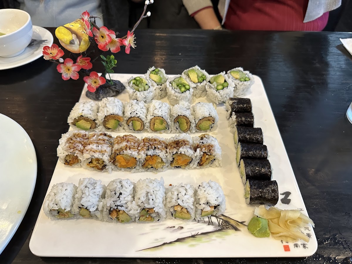 Asian fusion has come to Danville! The menu is quite extensive so we decided to try the sushi, with cheese wontons, spring rolls and edamame for starters. There was one vegetarian in our group and plenty of options. Service was very thoughtful. They put our vegetarian sushi tolls on a separate platter. Food was fresh and we enjoyed the cocktails at happy hour! We even tried their fried ice cream for dessert which was different than other fried ice cream I tried in that it seemed more like a thin covering of cake. Looking forward to trying more!